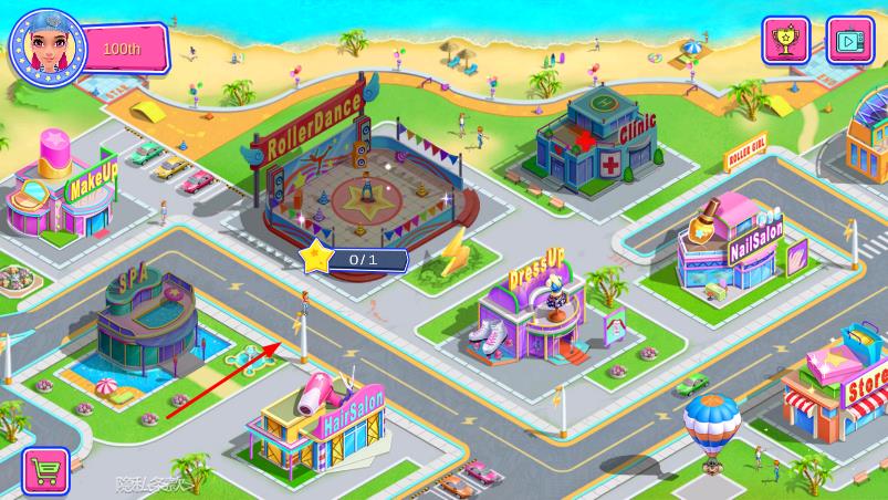 1、進(jìn)入游戲,在主界面中,點(diǎn)擊標(biāo)識(shí)的衣帽間建筑,進(jìn)入服裝搭配場景。