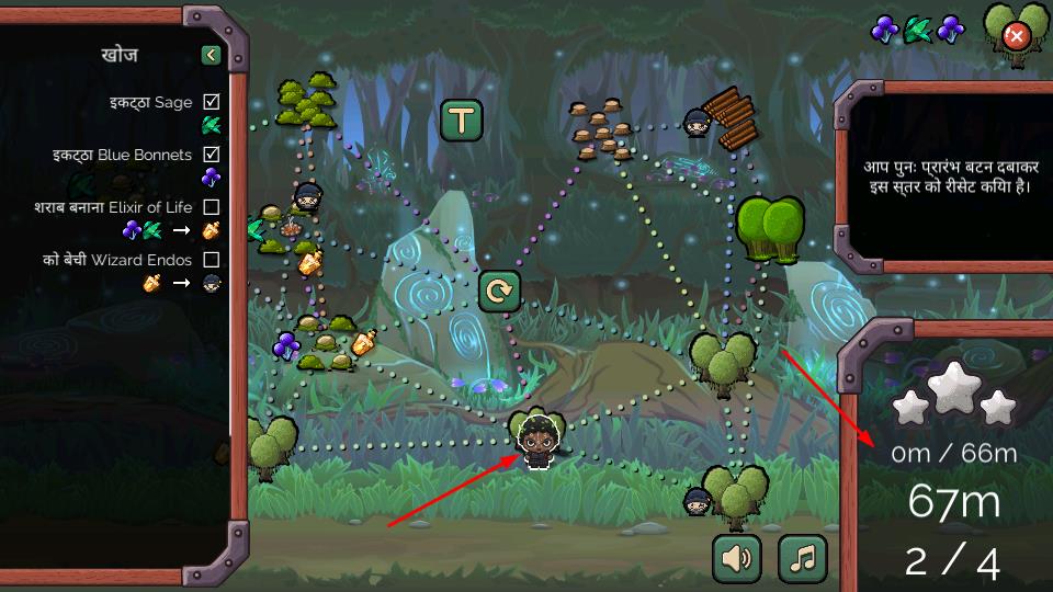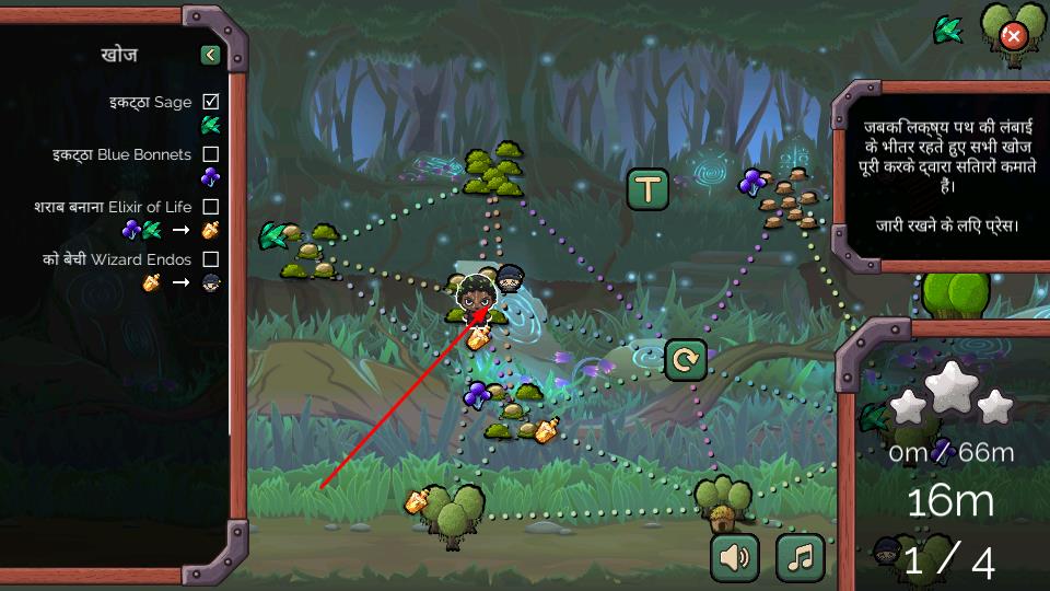 2、操控角色在森林地圖移動(dòng),途經(jīng)植物、道具時(shí)自動(dòng)收集,完成左側(cè)列表對(duì)應(yīng)項(xiàng)目,留意地圖障礙與新區(qū)域。