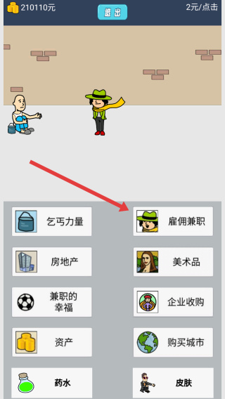 3、在資金足夠時,點擊雇傭兼職選項,解鎖新角色協(xié)助,提升金幣獲取效率,推進游戲進程。