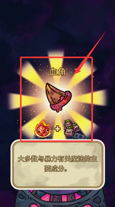 4、制作完成后取得"猩紅之角",物品描述顯示其為黑魔法核心素材。