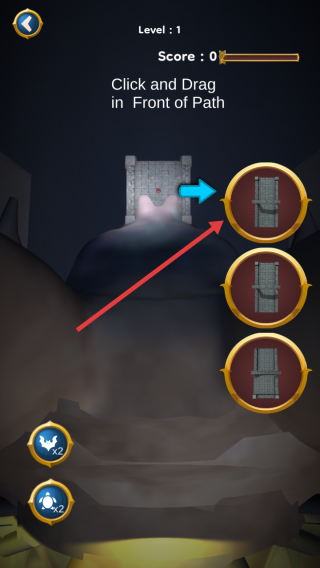 1、Level1關(guān)卡,按Click and Drag in Front of Path提示,拖動(dòng)右側(cè)第一個(gè)方塊到路徑缺口,填補(bǔ)道路讓角色通行。