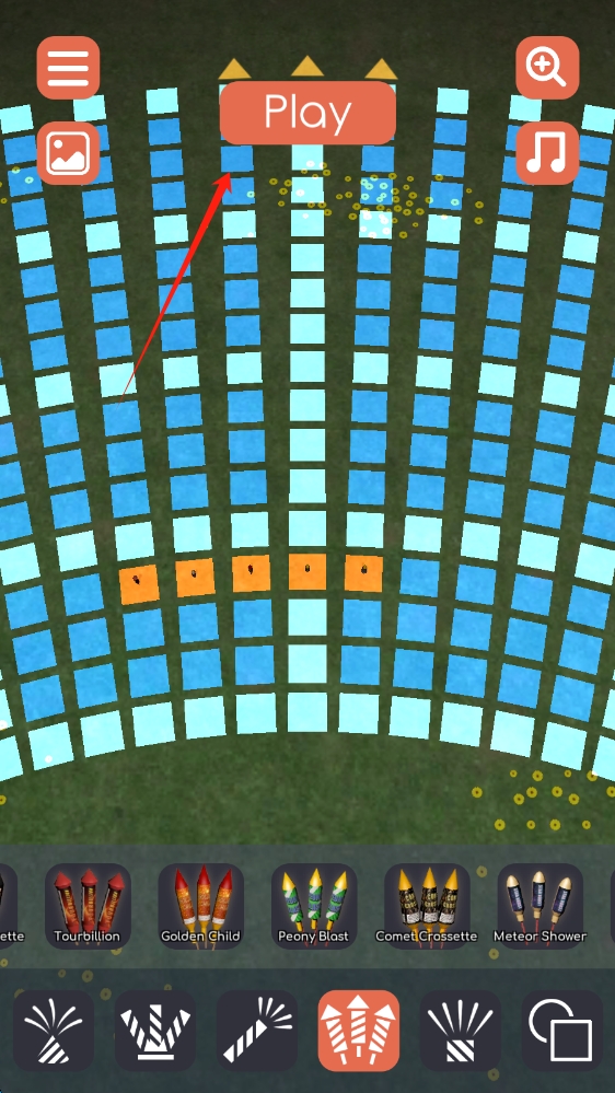 1、點擊Play,進入煙花模擬游戲,開啟絢爛煙花體驗之旅,點擊選擇喜歡的煙花類型。