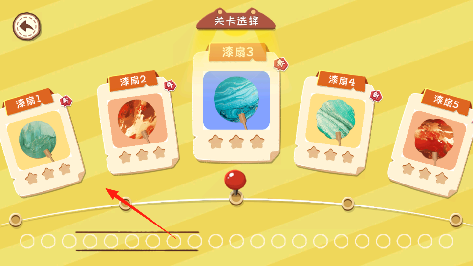 1、進入游戲主界面,能看到漆扇1到漆扇5的關卡列表,每個關卡對應不同樣式的漆扇制作任務。