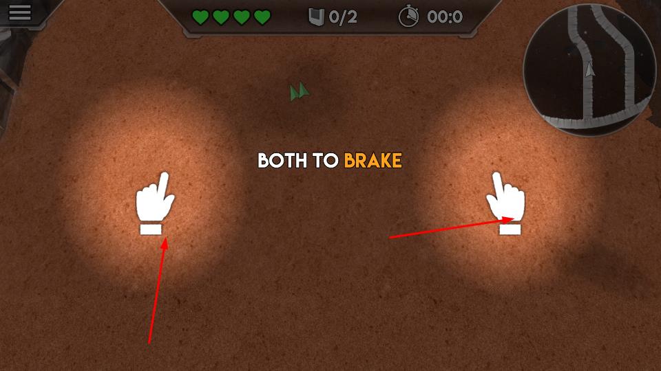 2、在游戲操作界面,依據(jù)提示,雙指點(diǎn)擊對(duì)應(yīng)區(qū)域可實(shí)現(xiàn)剎車操作,把控車輛行駛節(jié)奏。