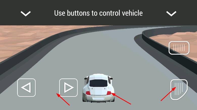 2、進(jìn)入賽道場景后,根據(jù)提示,使用下面的的按鈕來控制賽車,左邊是控制左右方向,右邊是加速與后退。