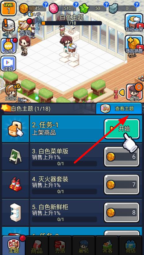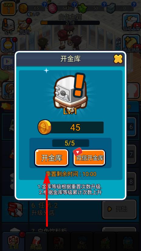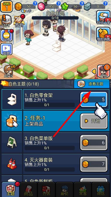 1、進入游戲后先完成店鋪基礎布置,根據(jù)初始資金采購零食、飲料、日用品等基礎商品,按類別陳列在貨架上,做好開業(yè)準備。