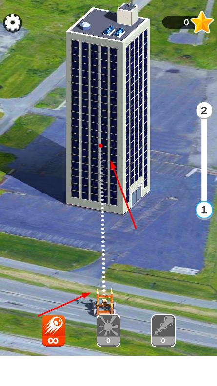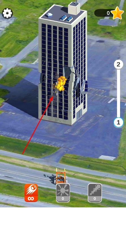 2、進(jìn)入場(chǎng)景后,控制拆遷工具,瞄準(zhǔn)大樓,發(fā)射出拆遷物品,對(duì)大樓進(jìn)行攻擊。