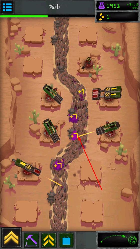 2、戰(zhàn)斗過(guò)程中,利用殺死敵軍獲得的生物質(zhì),投資新炮塔并將兩個(gè)相同的炮塔融合,升級(jí)為更強(qiáng)的炮塔,提升整體防御能力。