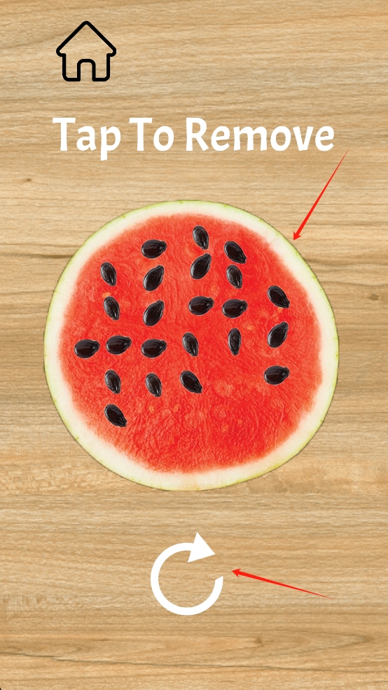 3、根據(jù)畫面中的文字提示,找到帶有深色紋路的西瓜區(qū)域,連續(xù)點(diǎn)擊西瓜的表面,逐步將西瓜籽移除。