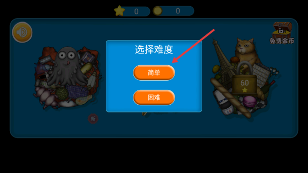 1、點擊山體場景下橙色開始游戲按鈕,跳轉(zhuǎn)至難度選擇界面,開啟這款含怪物山體元素的卡通風(fēng)格游戲,正式進入挑戰(zhàn)流程。