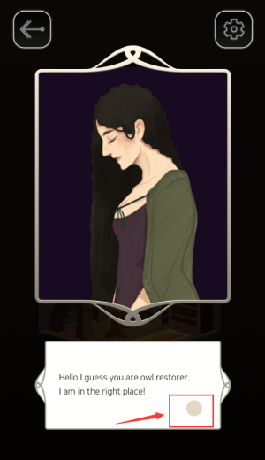1、點擊紅框圓形按鈕,確認(rèn)對話繼續(xù)游戲劇情。