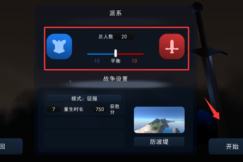 3、選擇派系和對方的人數(shù)還有模式,選好了點擊開始。