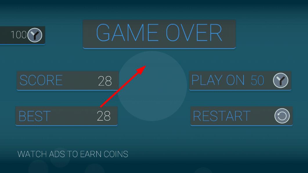 3、持續(xù)躲避方塊與墻面可積累分數(shù),加速狀態(tài)下得分翻倍,若觸碰同色方塊或墻面則游戲結束,結算當前分數(shù)并可重新開始挑戰(zhàn)。