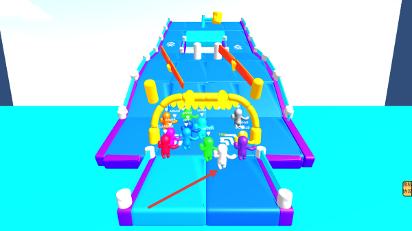 1、加入多人闖關(guān)隊(duì)列,操控彩色小人起跑,混在人群搶靠前身位,避開初始擁擠碰撞,快速穿越旋轉(zhuǎn)門、擺桿等首波障礙。