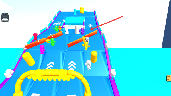 3、最后路段全力沖刺撞線晉級(jí),淘汰落后者,反復(fù)挑戰(zhàn)熟悉擺桿周期等障礙規(guī)律,優(yōu)化跑位路線,提高吃雞成功率。