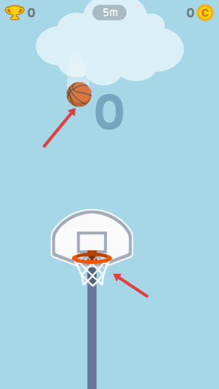 2、開始游戲后,籃球從空中掉落,你需要控制籃筐的方向,讓籃球掉落在籃筐中。