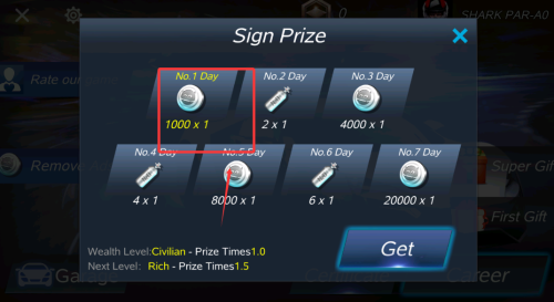 1、每日登錄自動(dòng)彈出簽到界面,連續(xù)領(lǐng)取可獲得稀有零件與加速道具,助力車輛性能提升。