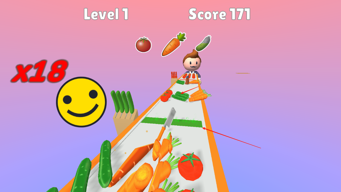 3、遞進式關卡設計:關卡難度循序漸進,初期以簡單蔬菜和基礎切割要求為主,后期增加復雜蔬菜組合、限時切割等元素,讓玩家在闖關中逐步提升刀法技術。