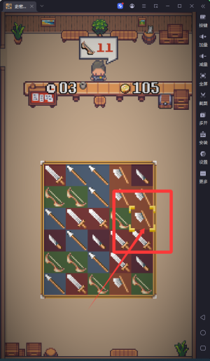 1、玩家需要將三個(gè)相同類型的武器圖標(biāo)進(jìn)行消除組合,通過這種方式來完成顧客的訂單需求,實(shí)現(xiàn)銷售目標(biāo)。