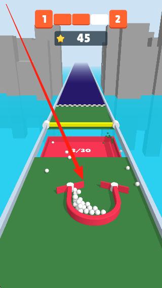 2、闖關(guān)過程中,滑動(dòng)控制U型收集器靈活移動(dòng),盡可能收集更多球球,朝著目標(biāo)分?jǐn)?shù)穩(wěn)步推進(jìn)。