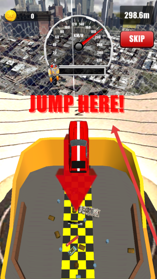 1、看到JUMP HERE的提示時(shí),需要借助車速表觀察速度,在起跳臺(tái)處把握時(shí)機(jī)跳躍,完成最后的空中賽程。