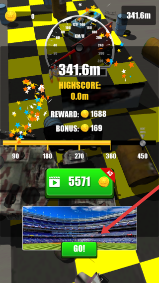 3、在結(jié)算的界面,查看本次的成績(jī)與獎(jiǎng)勵(lì)后,點(diǎn)擊GO的按鈕,進(jìn)入下一關(guān)的場(chǎng)景進(jìn)行挑戰(zhàn)。
