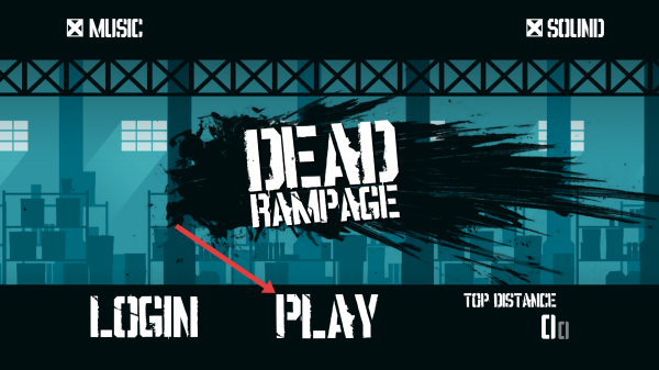 1、在游戲Dead Rampage中,點擊PLAY按鈕,開始游戲,操控角色在場景中奔跑。