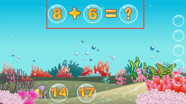 2、進(jìn)入答題界面后,根據(jù)題目要求,計(jì)算算式結(jié)果,如8 + 6 = 14,選擇正確的答案,完成答題任務(wù)。
