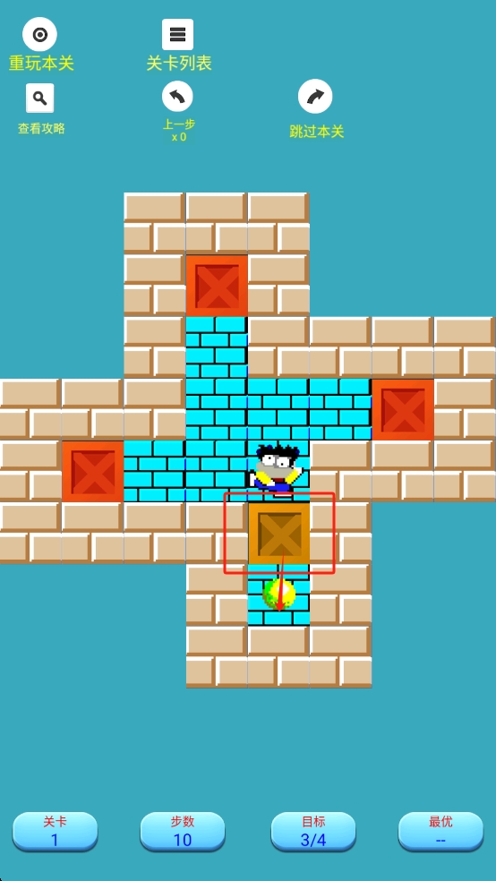 1、箱子路徑規(guī)劃:觀察木箱與目標(biāo)格子的直線距離,避開墻體和其他箱子的阻擋,通過先推邊緣箱再推核心箱的思路,規(guī)劃最優(yōu)推動順序,減少無效操作。