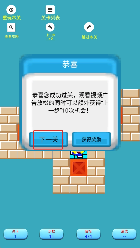 3、收集齊四個綠色球體后,這里我們點擊彈出窗口中的下一關(guān)按鈕,即可進(jìn)入后續(xù)的關(guān)卡繼續(xù)挑戰(zhàn)。