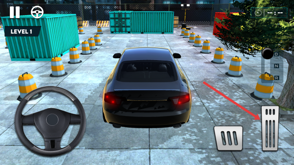 1、在游戲中,通過屏幕上的油門和剎車,控制車輛的速度,在停車場中行駛。