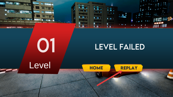 3、如果關(guān)卡失敗,可點(diǎn)擊REPLAY按鈕重新開始關(guān)卡,繼續(xù)挑戰(zhàn),也可點(diǎn)擊HOME按鈕返回主菜單,選擇其他關(guān)卡或進(jìn)行其他操作。