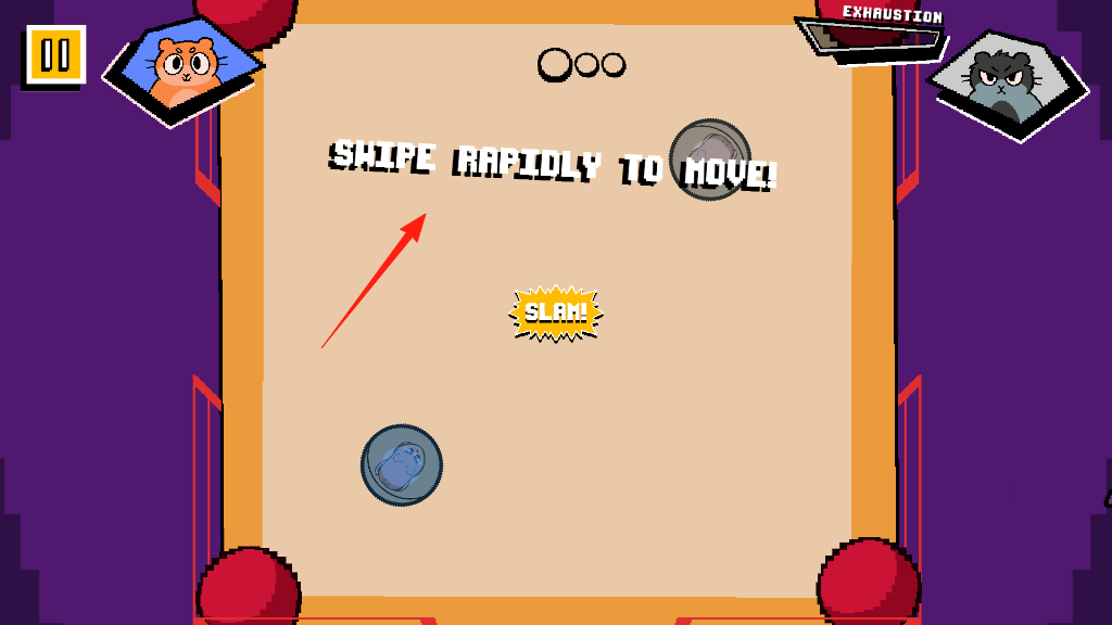 2、進(jìn)入游戲,按提示快速滑動(dòng)屏幕,讓倉(cāng)鼠球移動(dòng),遇到SLAM按鈕,看準(zhǔn)時(shí)機(jī)點(diǎn),能讓球猛砸地面,說(shuō)不定能彈飛撞開障礙,在賽道上靈活操作沖呀。