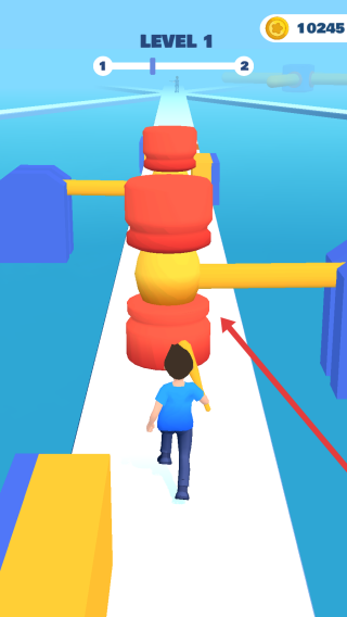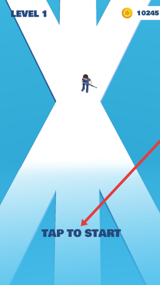 1、點擊TAP-TO-START按鈕開啟LEVEL-1,操控角色踏上闖關路,此時金幣為10245,準備迎接前方未知障礙考驗。