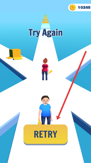 3、闖關失敗后,點擊下方黃色RETRY按鈕,可重置進程,再次挑戰(zhàn)LEVEL-1,爭取順利通過旋轉障礙,繼續(xù)游戲征程。