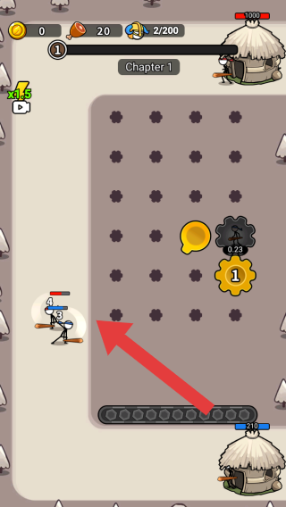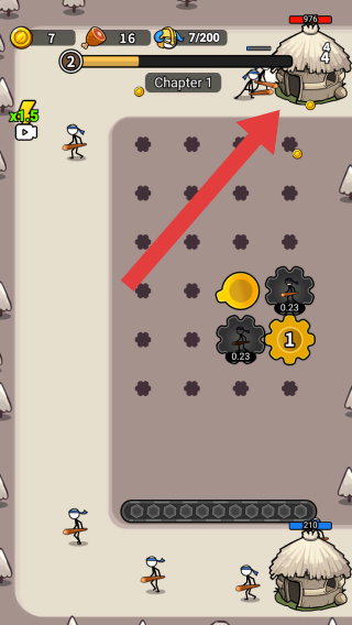 2、齒輪會(huì)隨著時(shí)間不斷的涌出火柴人,藍(lán)方屬于我方陣營,最終目標(biāo)是攻破敵人的陣營,進(jìn)擊的路上需要先克制敵人。