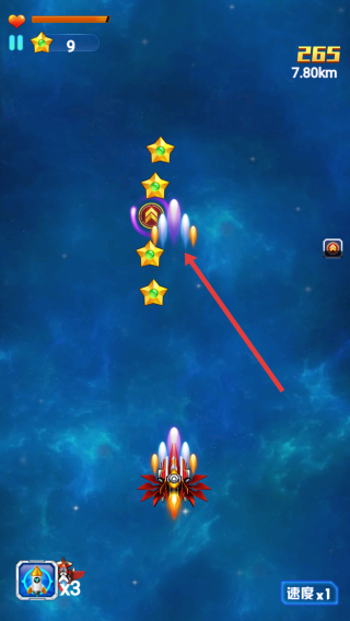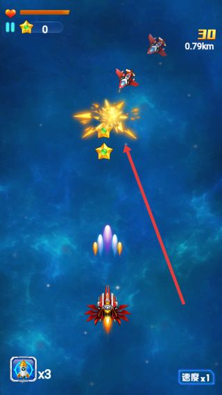 2、主動(dòng)收集星星,積累數(shù)量可解鎖獎(jiǎng)勵(lì);遇到道具比如火箭、火力提升及時(shí)拾取,增強(qiáng)輸出。
