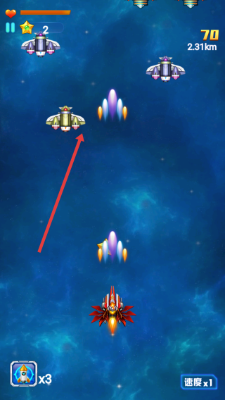 1、進(jìn)入了飛機(jī)大戰(zhàn)頁(yè)面,滑動(dòng)屏幕控制戰(zhàn)機(jī)移動(dòng),躲避敵機(jī)子彈與撞擊,優(yōu)先射擊前方敵機(jī)。