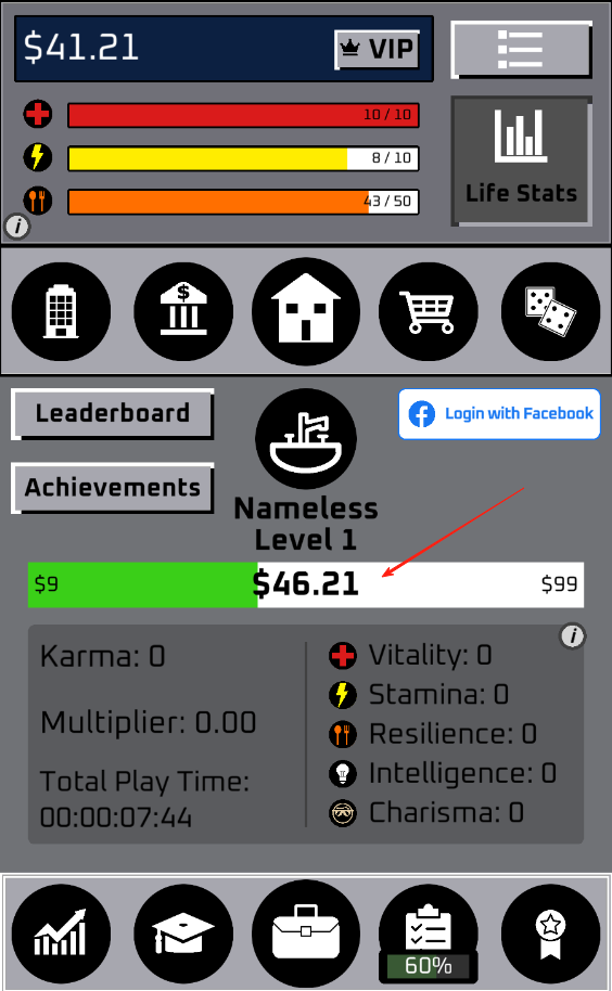 3、當(dāng)達(dá)成積累足夠財(cái)富、實(shí)現(xiàn)人生目標(biāo)等條件后,可享受無憂無慮的生活,同時(shí)能查看與全球玩家的進(jìn)度對(duì)比,解鎖新的人生成就。