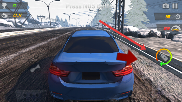 1、需要關(guān)注右側(cè)NOS的計(jì)量表,如果能量就緒時(shí)點(diǎn)擊,觸發(fā)氮?dú)饧铀?,短時(shí)間內(nèi)提升車速。