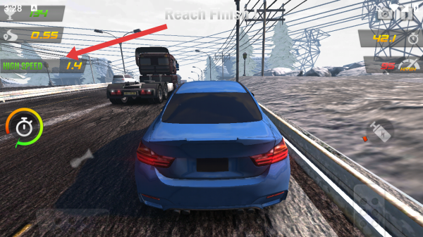 3、可以通過超車、氮?dú)饩S持HIGH SPEED的狀態(tài),HIGH SPEED越久分?jǐn)?shù)越高,還可疊加速度的增益。