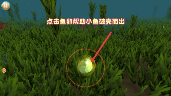1、進(jìn)入海底場(chǎng)景,開局按照提示點(diǎn)擊魚卵,幫助小魚破殼而出,完成小魚的孵化,進(jìn)入海洋后,控制小魚移動(dòng)。