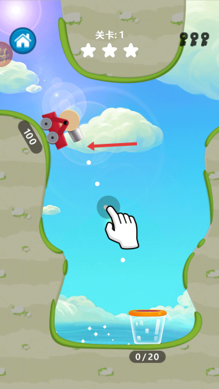 1、在游戲中,按照提示點(diǎn)擊屏幕,控制裝置釋放物品,讓物品準(zhǔn)確落入下方的容器中。