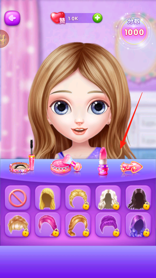 2、到化妝環(huán)節(jié),界面有睫毛粉餅口紅等美妝工具,選喜歡的化妝品,點(diǎn)一下給人物化妝,比如用口紅換唇色,用睫毛膏刷出長(zhǎng)睫毛,一步步把人物變得美美的,提升分?jǐn)?shù)。