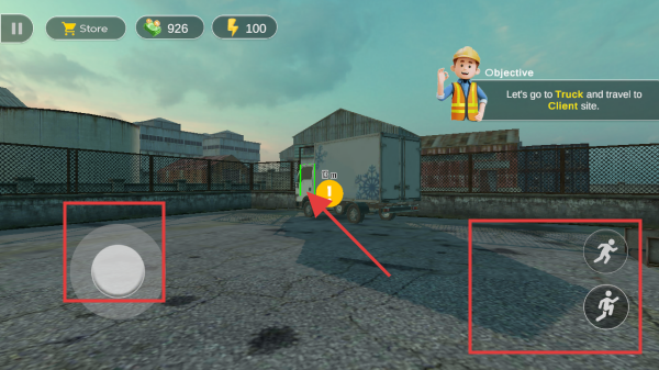3、根據(jù)游戲提示Let's go to Truck and travel to Client site,操控角色移動(dòng)到卡車處,前往客戶所在地完成任務(wù)。