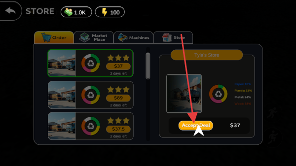 2、在游戲的商店界面中,當(dāng)看到合適的訂單時(shí),點(diǎn)擊Accept Deal按鈕,即可接受訂單并開展相關(guān)業(yè)務(wù)。