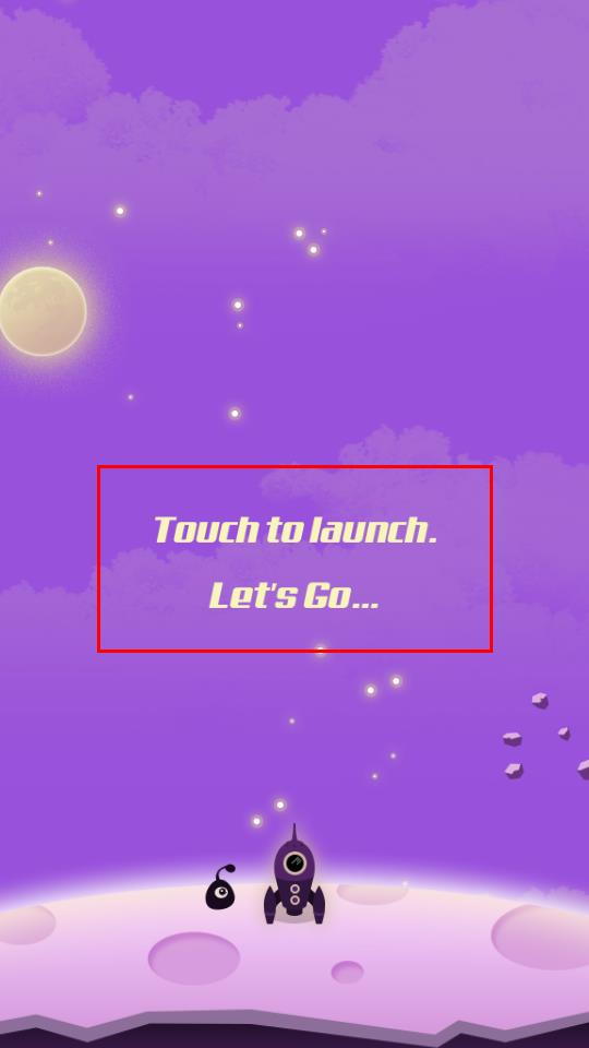 1、需要進(jìn)入游戲啟動界面,點擊屏幕觸發(fā)Touch to launch指令,紫色火箭將從月球表面點火升空,開啟太空冒險旅程。