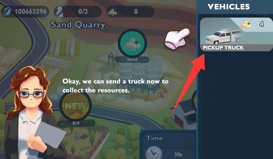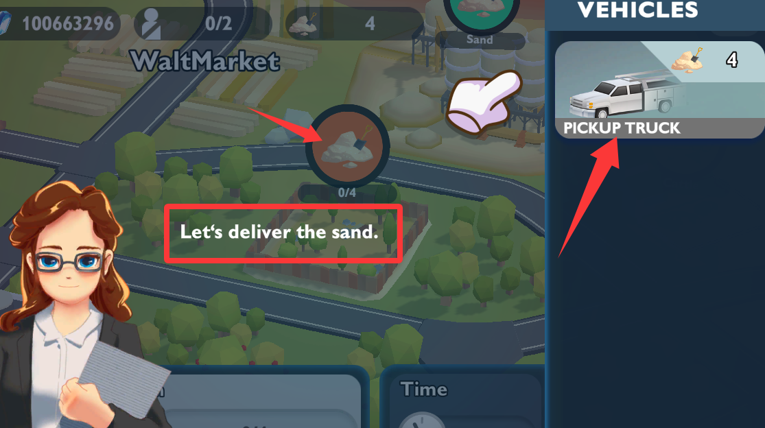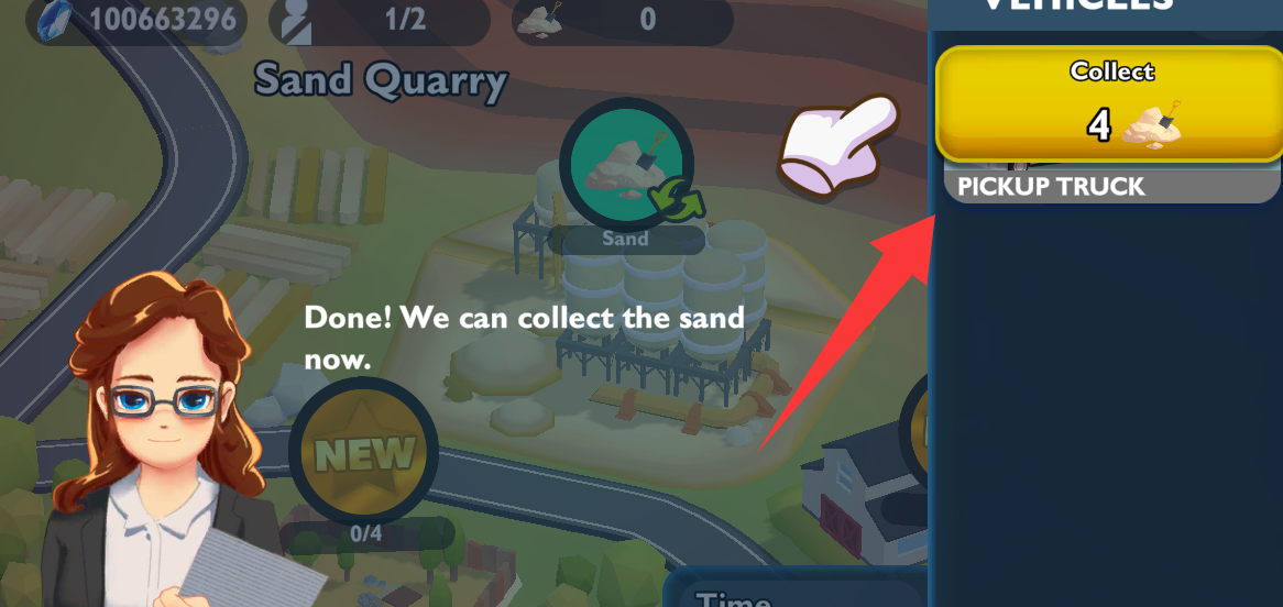 3、點擊右上角的皮卡車去運送沙子。