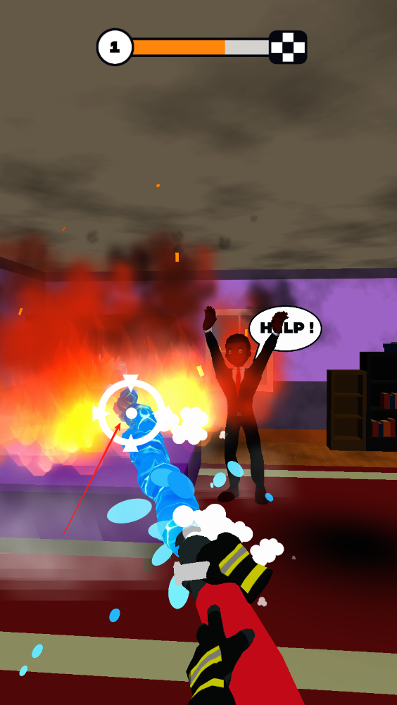 1、屋子里到處都是火堆,我們需要將準心對準火堆,進行滅火,將里面被困的人員解救出來。