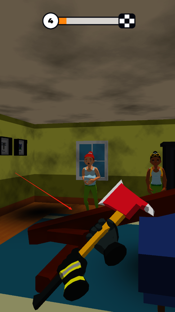 3、先將火滅掉,發(fā)現兩個女孩被木梁困在里面,再使用斧頭將木梁劈開,將女孩解救出來,徹底撲滅大火后完成任務。